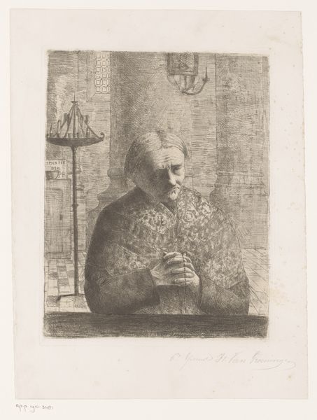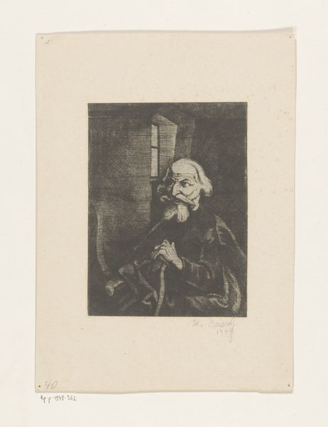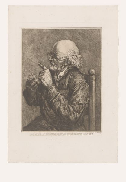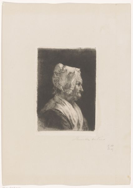 Editor: We're looking at an engraving from between 1762 and 1817, titled "Portret van Gabriel van Rooyen en H. Langeveld." It presents a figure with a sharp, almost austere profile, captured in incredible detail for the medium. What resonates with you as you look at it? Curator: It's a fascinating example of how engravings capture not just likeness, but also status and the weight of history. Look at the eyeglasses perched on his nose, almost like a symbol of intellect and refinement. The subject isn’t just anyone. The print operates as a cultural memory; can you sense the dignity conferred upon the sitter by this specific visual language? Editor: Absolutely. The glasses, the formal coat… They speak to a certain societal position. I am intrigued by the lack of a clear background. Does that say something? Curator: Precisely. The figure emerges from a densely hatched darkness, suggesting a depth of character, a gravitas perhaps earned through time and experience. That lack of explicit background focuses our attention solely on him. The hatching serves a psychological purpose, shrouding the subject, inviting introspection. Consider also, what is he looking at? Who is H. Langeveld and why isn’t he clearly represented? Editor: So, it’s less about pure representation and more about conveying… essence? A sense of importance conferred through visual symbols? It almost makes the viewer question what the context really means. Curator: Exactly. The engraving freezes a moment, imbuing it with lasting cultural and symbolic power, making us ponder on the nature of recognition. Editor: I hadn't considered all the layers of symbolism within something seemingly so straightforward. Curator: The best portraits are more than just likenesses.