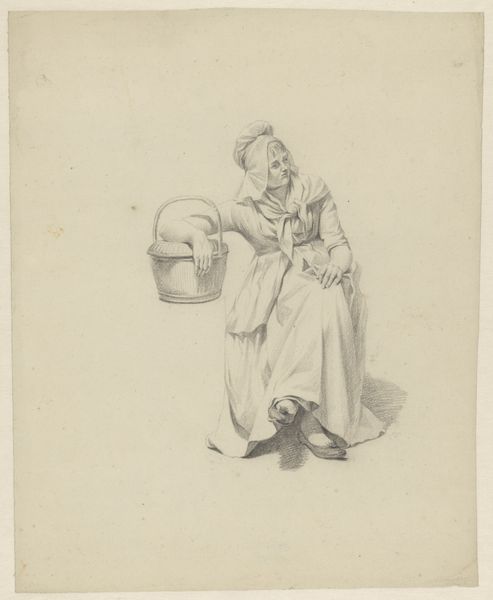 Editor: Right now we're looking at "Woman, Child and Dog Looking Far Away," a pencil and chalk drawing by Maria Cosway. I’m really struck by the wistful, almost melancholic mood of the piece. Everyone’s gaze is directed…somewhere else. What do you see when you look at this, uh, gentle scene? Curator: Well, first off, "gentle" is a lovely word for it! For me, there's a powerful sense of yearning here. That shared gaze, like they're all dreaming the same dream, or perhaps… missing the same thing. The softness of the chalk and pencil really amplifies that delicate feeling. But does that yearning feel universal, or somehow tied to their specific historical context? What do you think? Editor: That's interesting, what do you mean by historical context? I guess I’m seeing something universal, but you think something is specific to their lives? Curator: Absolutely. Think about Cosway herself, a successful female artist in a time that wasn't exactly…cheering women on. Maybe this scene is imbued with her own quiet rebellions, her longing for artistic freedom, reflected in their distant gazes. Perhaps the "far away" is a metaphor for a future, or a possibility, beyond their grasp but still intensely yearned for. It makes you wonder, doesn't it? About unfulfilled dreams, stifled desires...all wrapped up in a deceptively simple drawing of a woman, child and a fluffy dog! Editor: Wow. That really reframes how I see it. It’s less just a quiet moment, and more… a quiet act of resistance almost. Curator: Precisely! And isn't it wonderful how art can whisper such complex stories through seemingly simple scenes?