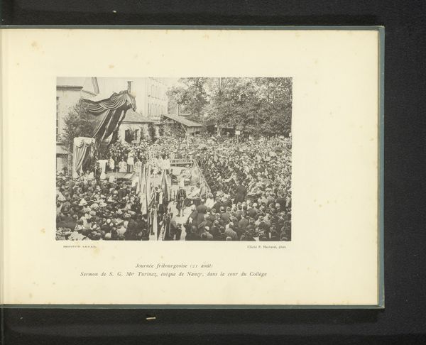 This photograph by Th. Lantin captures King Leopold II's visit to the Antwerp World Fair in 1894. Photography was a rapidly evolving technology at this time, deeply entwined with industrial progress and its representation. Consider the material reality of this image, made through a complex chemical process, requiring both skilled labor and industrial production. Photography, unlike painting or sculpture, offered the seeming promise of objective truth, capturing a moment in time with mechanical precision. But what does this image really tell us? The controlled composition, the carefully arranged crowds, the prominent display of national symbols – all point to a carefully constructed narrative of royal authority and national pride. The photograph becomes a tool for projecting power, obscuring the harsh realities of Leopold's colonial exploitation in the Congo. By examining the materials and techniques of this photograph, we can begin to understand the complex relationship between technology, power, and representation in the late 19th century. It reminds us to look beyond the surface of an image and consider the social and political forces that shaped its creation.