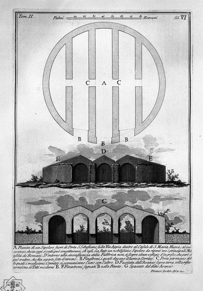 Giovanni Battista Piranesi created this etching, a plate from "The Roman Antiquities," sometime before 1778. Piranesi’s Rome was a city of fragments, haunted by its own grandeur, and deeply implicated in the political ambitions of his patrons, including the Vatican. This print depicts the Mausoleum of Helena, mother of Emperor Constantine, along the Via Labicana. Piranesi’s work provides not just an architectural rendering, but a narrative about history, power, and memory. The precision of the architectural details contrasts with the romantic decay, highlighting the tension between the ruin and its former glory. What does it mean to meticulously document the fall of an empire? Consider the female figure at the center of this mausoleum’s history: Helena, a woman of humble origins who rose to become one of the most influential figures in the Roman Empire. Her identity as a woman, a mother, and a Christian convert shapes our understanding of the space. Piranesi invites us to contemplate the layers of history, identity, and power embedded in this decaying structure.