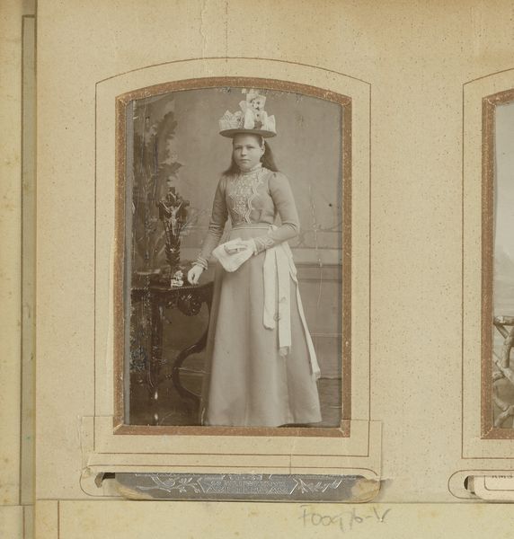 Corine Ingelse made this photographic portrait of a young woman sometime between 1869 and 1950. Photography, like all material culture, is tied to production, politics, and consumption. Consider the labor involved in creating photographic materials like the glass or celluloid plate, and the chemical preparations needed to sensitize it. This was also a time when darkrooms had many women workers. The portrait itself suggests the social and cultural significance of photography as a tool for documenting identity and status. The subject's clothing and demeanor suggest a certain level of affluence, further emphasized by the ornate frame surrounding the image. Ultimately, this photograph is a testament to the intricate interplay between materials, making, and social context, challenging traditional notions of fine art by highlighting the labor and social dynamics inherent in its creation.