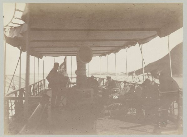 Curator: This gelatin-silver print, attributed to G. Hidderley, dates from around 1900 to 1910. It’s titled "Mannen in Volendamse klederdracht op een kade"—Men in Volendam costume on a quay. Editor: It’s rather bleak, isn’t it? That overcast sky and muted palette give the impression of a tough life lived by the sea. The textures of the cloth and rope feel almost palpable. Curator: The appeal to realism aligns with a specific period where representing everyday life, and the lives of ordinary folk, became more prominent. Volendam was already a tourist destination, of course. But here, it’s less picturesque postcard, more sociological document. Editor: Absolutely. Note the men's attire. We have to ask about the labor involved in creating these garments, as well as their significance in social and cultural events of the time. How accessible would these fabrics and the clothing itself have been to a larger segment of the population? Curator: That’s key. Early photography democratized portraiture, and this image preserves a moment in Volendam’s evolving identity. The placement of these men in their traditional clothing is powerful within the context of a society becoming ever more modern. Editor: I wonder, how did images like these, disseminated at the time, influence notions of Dutch identity? Were they targeted towards local populations or external audiences seeking an authentic view of the Netherlands? Also, this ship’s number, “VD 196”, would it hold records? Curator: A detailed archival investigation could unearth potential ties to fishing businesses. These kind of details, though minor at first, help build up context for the whole image, telling us about social structures and trades prominent to Volendam at the turn of the century. Editor: For me, it makes me appreciate the raw authenticity achieved with the gelatin-silver process. It’s much more than merely depicting folks by a harbour. It serves to investigate Dutch self-conception at the moment photography took on new socio-political meanings. Curator: An image that sparks questions about industry and representation, isn’t it? It is really amazing to unpack the multiple layers.