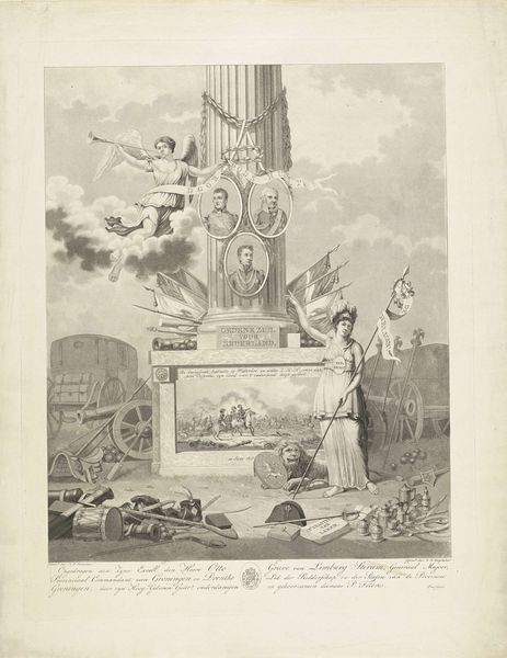 This print by William Bromley commemorates the British victory at the Battle of the Nile in 1798. It depicts Horatio Nelson and fourteen officers. The image creates meaning through its visual codes. The figure of Roem, or Fame, carries a portrait of Nelson. Below, a reclining male figure symbolizing the Nile River and a sphinx evoke the exotic locale of the battle. These are typical visual devices through which the British, during the late 1790s, constructed a sense of national identity through naval victories. It also reveals the power of the British empire at the time. Such images were widely disseminated through print culture, shaping public opinion and reinforcing imperial ambitions. Art historians use archival research and period publications to understand how art shapes national identity and reflects the complex interplay of politics, culture, and power. By examining this print, we gain insights into the social conditions and institutional forces that shaped artistic production and public perception of British power during this period.