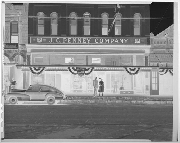 Curator: This photonegative, by Hamblin Studio, captures the Chadwick Theater exterior. There's something haunting about its reversed tonality. Editor: It's ghostly, isn't it? The radiant glow makes me think about lost dreams, the theater as a temple of shared experience. Curator: Indeed, the processing is interesting here. To me, the photographic technique itself speaks to early 20th-century modes of production and the way these spaces were built and consumed by the public. Editor: And what's playing? "Don Juan," Altar of Desire—suggests the powerful grip of classic archetypes on our subconscious. The Chadwick sign looms like a beacon of aspiration. Curator: Consider the material processes, though—the chemical baths, the manipulation of light. It is a testament to how much labor was involved in the creation of an image, as well as in constructing the theater itself. Editor: Ultimately it reveals something about our collective yearning. It's like the theater became a mirror, and we were briefly able to see ourselves. Curator: I agree. The image really shows the tangible realities behind the creation and perception of entertainment.