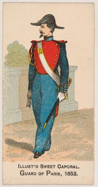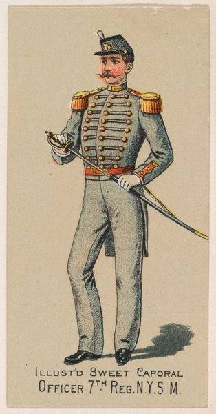 This chromolithograph of a Spanish Royal Escort Captain was produced in 1886 by the Kinney Tobacco Company, as a promotional insert for Sweet Caporal Cigarettes. Chromolithography was a popular printing technique that boomed from the 1870s onwards. This small card is a testament to the democratizing power of industrial production. The image has been built up with multiple layers of ink applied to a lithographic stone or metal plate. These techniques allowed for the mass production of colorful images, making them accessible to a wide audience. But it also depended on factory labor. Notice how the Captain's vibrant uniform and proud stance are designed to catch the eye, enticing consumers to purchase Sweet Caporal Cigarettes. The mass production of images like this reflects the growth of consumer culture and the increasing importance of advertising in the late 19th century. The card reminds us that art and commerce are often intertwined, and that even seemingly simple objects can reveal complex social and economic relationships.