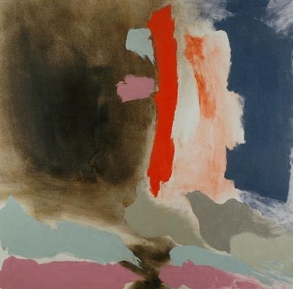 Editor: So, this is "San Bivar Signal" painted by Friedel Dzubas in 1979, using acrylics. I’m immediately struck by the boldness of the colours and the way they interact; it's quite arresting. What do you see in this piece, especially considering its place within the Color Field movement? Curator: Dzubas' work provides us a window into a specific moment of the late 20th century where artists were really questioning the very foundations of painting itself. “San Bivar Signal”, with its sweeping blocks of color, acts almost as a direct response to the social upheavals happening then; movements that called for simplification, for the stripping away of excess. How do you see these forms relating to one another? Editor: I notice how the shapes don't really overlap but rather seem to push against each other. It gives a sense of tension, but also of balance. I can definitely see this as pushing back against more conventional compositions, a more streamlined mode of thought. Curator: Precisely! We should also consider how the “all-over” composition impacts the viewer’s engagement. Are we invited to contemplate individual forms or rather to surrender to a sense of wholistic experience? Think about the era it was created in. Did these artistic experiments of spatial perception carry weight with those advocating societal change? Editor: That’s fascinating, the idea of total immersion reflecting broader social change and engagement. I hadn't considered how deeply interwoven art can be with social movements. Curator: And isn't that the exciting challenge? To explore the intersections, to question what narratives are told, and whose voices are amplified in art history! Editor: Absolutely. This piece has definitely given me a new perspective. Thank you. Curator: My pleasure! There's always more to unpack with a painting like this.