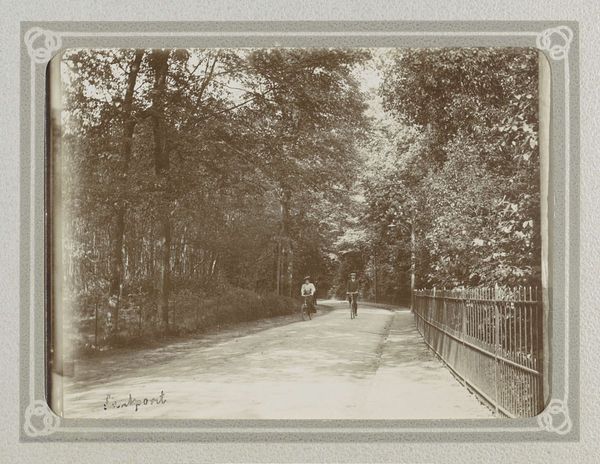 Editor: So, here we have "Bomenlaan met jongen met kruiwagen" – "Avenue of Trees with Boy and Wheelbarrow"— a photograph taken by Gerrit Hubers sometime between 1894 and 1927. It has this incredibly soft, almost hazy quality, and the composition is dominated by these towering trees lining the avenue. There's a lone figure, a boy with a wheelbarrow, adding a human element. What strikes you most about it? Curator: Immediately, I consider the labor implied in this seemingly tranquil scene. We have this young person engaged in what appears to be manual work. How does the photographic process itself become a form of labor, mirroring the boy’s effort? The materials matter: the chemicals used to develop the image, the paper it's printed on – all point to a specific industrial context, one deeply embedded in processes of extraction, manufacture, and consumption. Editor: That's an interesting perspective. I hadn't thought about the process that much! How would that context differ at that time? Curator: Consider the albumen print process that was prevalent during the late 19th century when this photo was possibly taken. Albumen, derived from egg whites, created a specific tone and allowed for mass reproduction. Who collected these images and for what purposes? How did they circulate? Perhaps this photograph participated in shaping particular ideals or narratives related to nature, childhood, and labor itself. Was this bought as decoration or a snapshot of child labour for the wealthy? Editor: So, the materiality is directly linked to consumption patterns and potential societal views about landscape and work? Curator: Exactly. We’re not just looking at a charming scene. We're engaging with the whole system of production and exchange that makes that scene visible. Consider how that informs our contemporary perception, as viewers far removed from that original materiality. Editor: That really makes me rethink how I approach photography from this era. It is not enough to simply view the artwork, you have to consider the context it came from to truly be able to appreciate it. Thanks. Curator: Indeed. Paying attention to the production process, materials, and historical setting allows for a richer engagement, it definitely is essential for interpretation of art!
