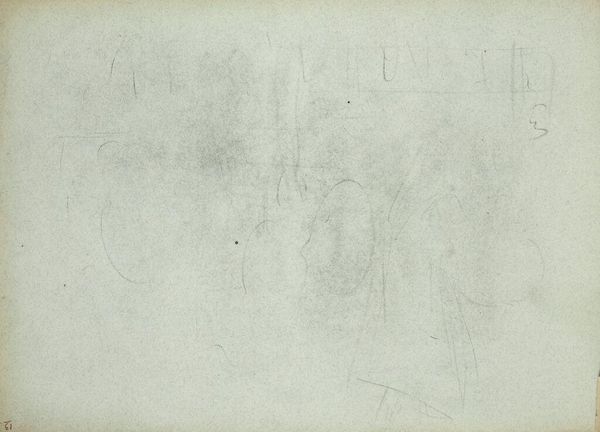 Editor: Here we have Cy Twombly’s "Untitled" from 1956, rendered in graphite and charcoal on paper. There's this fascinating contrast: frenetic scribbles at the top give way to a comparatively blank expanse beneath. What do you see in this piece, looking at it through a Formalist lens? Curator: Its value rests within the pure visuality of form. Consider the dichotomy, indeed, between the graphic activity of the upper register and the textural field constituting the lower two-thirds. The upper section's loops and rhythmic disturbances play against the almost geological strata of the ground. The medium itself – charcoal and graphite – are crucial signifiers, drawing attention to mark-making as an act. Editor: So the meaning is in the visual tension and the process itself? Curator: Precisely. It's in how Twombly manipulates line and ground, activating the space, invoking dynamic interaction through the composition. Does this calculated distribution of the art elements not command our regard? The restrained palette further reinforces this emphasis on formal relationships. How does its seeming simplicity challenge our expectations of drawing? Editor: I see what you mean. I initially thought it looked like random scribbles, but seeing it as a conversation between line and space… it reframes the whole piece. The texture adds so much. Curator: The surface *is* crucial! That interplay underscores how material properties serve as aesthetic codes. Editor: I am left contemplating just how much "meaning" can be found solely within the formal elements of a piece like this. Thanks, it's been very insightful. Curator: Indeed. The purely visual is so frequently underestimated.