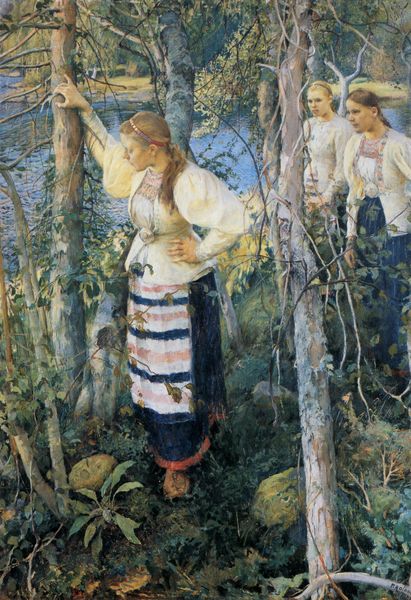 Konchalovsky made "At the Ilmen Lake," with oil on canvas and I like to imagine him really going at it, throwing himself into the work. The materiality of this piece is really what speaks to me. Look at how the paint is applied—thick in some areas, thin in others, almost like he’s sculpting the scene. The texture of the waves, for instance, is so palpable you can almost feel the boat rocking. Then, there’s the color palette, muted and earthy, which gives the whole scene a sense of gravitas. My eye keeps getting drawn back to the way the woman is rendered, with her orange top, it's so interesting how he used that color to balance the composition, it's like a spark of warmth amidst all that gray and brown. Maybe Konchalovsky was looking at somebody like Emil Nolde, another artist who wasn't afraid to use color in unexpected ways. Ultimately, this is a painting that rewards close looking, a meditation on the beauty and harshness of life by the water.