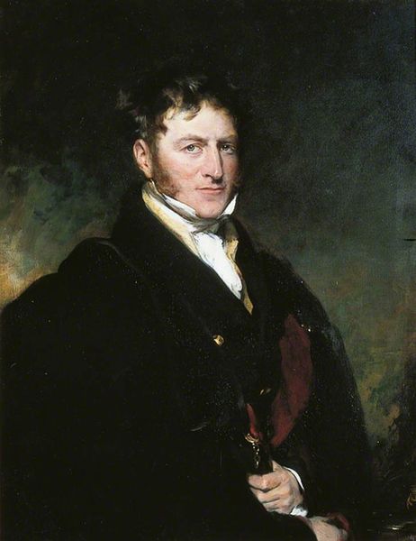 Editor: This is George Harvey's portrait of *David Ramsay Hay, Esq.* from 1830, rendered in oil paint. What immediately strikes me is the way the light catches on the folds of his vest, almost like highlighting the raw material before cutting and sewing. What stands out to you? Curator: The materiality of oil paint itself is quite prominent here, isn't it? Consider how Harvey builds up the layers to create the textures of the cloth and the sitter's skin. These are commodities transformed by labor, but still revealing their origins. Think about the sheep farms that produced the wool, the processes of dyeing, weaving, the tailoring to assemble garments which signal Ramsay Hay's status. What do you think about the connection between art and craft in that period? Editor: It’s interesting to consider portraiture in that way. It feels almost like early advertising – conveying status through meticulous depiction of commodities. I suppose it makes me wonder how Ramsay Hay's profession influenced the materials showcased in this piece, and how Harvey wanted it perceived. Curator: Exactly! David Ramsay Hay was an influential interior decorator and color theorist. The very tools and theories of his trade -- pigments, textiles, surface treatments -- become the subtext of the portrait itself. This challenges any easy distinction between "high art" and the practical skills of the artisan, doesn’t it? It invites a critical examination of what constitutes art and who decides. Editor: I see what you mean. By focusing on the tangible aspects, we can explore not just Ramsay Hay as an individual, but also the social and economic forces shaping his world. It's like the painting is a document of material culture. Curator: Precisely. Examining the materials reveals so much more than just aesthetics. It brings forward labor, consumption, and even class structure, turning what seems like a simple portrait into an engaging artifact. Editor: It changes how I look at portraits in general, really.