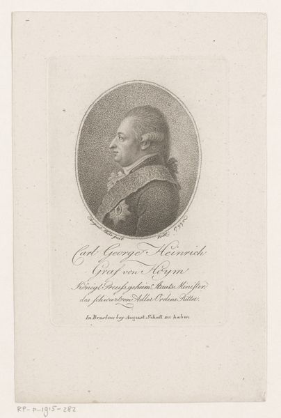 Editor: Here we have Johann Jakob Rieter's "Portret van E.O. Branth," made sometime between 1801 and 1823, a print housed at the Rijksmuseum. The subject's profile is striking, particularly the crisp lines of the engraving. What stands out to you in this piece? Curator: What immediately grabs me is the social context of portraiture at this time. Prints like these weren't just about commemorating an individual. It was about constructing a public image. Given the inscription identifying Branth as a Captain, we have to consider how this portrait operates within the theatre of 19th-century power and national identity. Does the formality of his attire and bearing suggest anything about how military leaders were viewed and wished to be viewed? Editor: I hadn't thought about the performative aspect. It's easy to see it simply as a record, but you're right, it's very deliberate. The Neoclassical style gives him a certain heroic air, doesn't it? Curator: Exactly. And notice how the inscription places the action in Copenhagen. This tells us something about the international dimensions of power, of naval authority in this period. Editor: So, it’s less about the man, E.O. Branth, and more about what he *represents* in that moment. Curator: Precisely. Think about the power of disseminating his image, even through something as “simple” as a print. This piece encapsulates how identities are manufactured and distributed through the political and social mechanics of visual culture. It's more than just aesthetics. Editor: This gives me a lot to consider when I look at other portraits now. It’s definitely not just a face; it’s history in print.