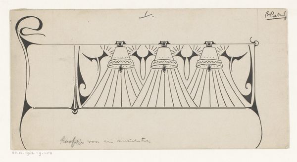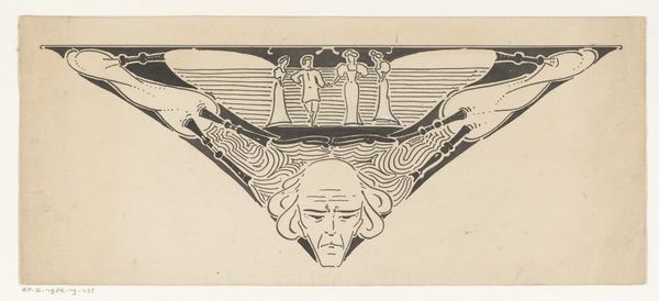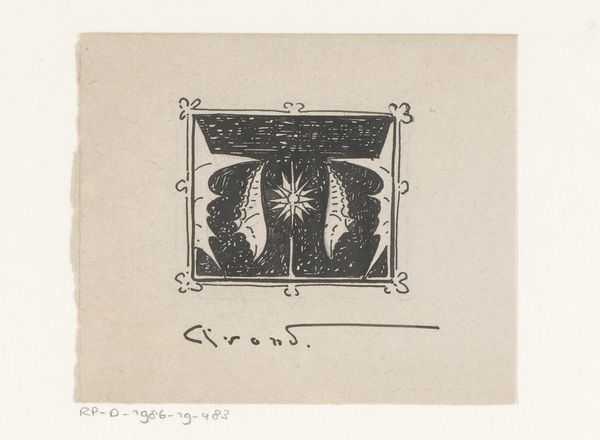 Editor: Right, so this book cover, simply titled "Boekomslag," believed to be from somewhere between 1887 and 1911, is the work of Gust van de Wall Perné. It combines techniques like collage, linocut, and printing to make this Art Nouveau piece. The striking contrast of blues and whites really catches the eye, but I’m unsure what to make of this unusual asymmetry. How would you interpret this work, and perhaps shed some light on its potential symbolism? Curator: Ah, asymmetry's dance, isn't it grand? Perné invites us into a world where balance isn't about mirroring, but about feeling. Notice how the title, "Verzen" (which translates to Verses or Poems), almost melts into these stylized, organic forms. They aren't just decoration, mind you, they are, in my humble opinion, echoes of the creative spirit trying to burst forth, pushing the boundaries, somewhat similar to thoughts of Van Gogh, full of energy. And the texture of that linocut? Editor: Yes! It gives it such a handcrafted, almost textile-like feel. Curator: Exactly! Like something plucked from a dream. Art Nouveau sought to unite art with everyday life. So imagine encountering this on a book. Would you pick it up? Editor: Definitely. It promises something…different. I wouldn’t expect to see something geometric like that on most book covers of that period, based on what I have studied. Curator: Indeed. Now, who knows what verses it might hold inside...Or not, of course. Perhaps the most fascinating part is exactly how incomplete or unrealized that promise feels. Don’t you agree? It tickles the imagination with unanswered questions. Editor: I do. Thinking about it like that makes the work a lot more compelling. I thought it seemed almost unfinished. Now I understand it's actually kind of perfect as it is. Thanks! Curator: My pleasure! Art is only completed in the eyes, in the thoughts, and especially, the heart of the beholder!