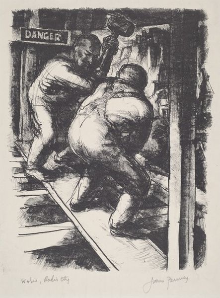 Santos Zingale made this lithograph, called "Scrub Ladies," in 1937. It's a humble scene, but Zingale’s use of hatching gives it a real sense of drama. Look how he’s built up the dark tones, layering the lines with such care and attention. You get the sense that he’s not just depicting these figures, but really thinking about the process of their labour. The texture of the lithographic crayon on the stone creates an image that feels both solid and full of movement. It's in the small details, like the way the light catches on the knuckles of their hands, or the folds in their clothes, that you see Zingale’s sensitivity to the physical world. The scrubbing cloth in the foreground is really fascinating, isn’t it? The detail in the folds and the shadow that is cast makes it feel as though it could be some alien life form. Zingale was part of the American Scene movement, and if you’re interested in art that celebrates the everyday, you could also check out the work of artists like Reginald Marsh. What’s great about art is that it is in endless conversation with itself.