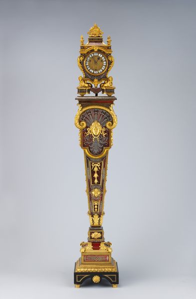 Thomas Cole crafted this chatelaine, likely in the early 19th century, using gold and glass to create a piece that marries utility with ornate design. The chatelaine presents a visual experience dominated by the geometric interplay of its components, from the triangular top piece to the rectangular body and circular watch key. The repeating motifs and symmetrical arrangement evoke a sense of classical order. Consider the structure of the chatelaine as a semiotic system. Each element can be seen as a signifier. The engraved scenes, chains, and dangling seal point to codes of status and identity of the period. The geometric arrangement speaks to underlying structures of power and representation. The overall effect challenges a singular reading, inviting a complex interpretation of its cultural significance. Ultimately, the chatelaine functions as a site where the aesthetic and the social intersect, opening a discourse on the relationship between personal adornment, social status, and artistic expression.