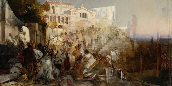 Mariano Fortuny Marsal captured this scene, titled "Arab Fantasia," with oils, immortalizing a vivid cultural spectacle. Here, the figures engage in what appears to be a performance. Notice the weapon brandishing, a symbol deeply embedded in human history across cultures. From ancient gladiatorial combats to ritualistic dances, the raised weapon signifies power, challenge, and the potential for conflict. In this context, the performance may point towards the celebration of martial prowess, or a symbolic reenactment of historical events. Consider how such gestures echo in Renaissance paintings, where heroes are often depicted with swords, embodying courage and virtue. This symbol, however, isn’t fixed. It morphs, becoming a sign of aggression, dominance, or even resistance. The power of symbols lies in their fluidity, and the narratives they evoke, connecting us to shared histories and primal emotions. Through collective memory, we are drawn to these images, as symbols resonate, revealing layers of meaning and cultural heritage.