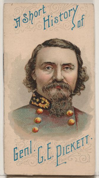 Editor: Here we have "A Short History of General John Bankhead Magruder," a colored pencil print from 1888, made by W. Duke, Sons & Co. It's so...crisp! Like looking into a slightly faded, idealized past. What’s your take? Curator: Crisp indeed, almost confectionary in its delicate lines and gentle hues. Makes you wonder, doesn’t it, about the stories we tell ourselves? How history gets packaged and sold, alongside, say, cigarettes. Did smoking General Magruder brand make one braver? Did it taste of victory? Look closely, Editor, at the title font: isn't it trying just a bit too hard? Editor: Oh, totally over-the-top font. Makes you almost miss Comic Sans! It *is* fascinating how image and narrative were deployed to sell completely unrelated goods. Were these "histories" considered accurate? Curator: Accuracy? In advertising? Perish the thought! Consider this more a form of myth-making, crafting little legends. W. Duke & Sons are selling you a particular vision of America, and a comforting certainty of past heroisms for present anxieties. This general becomes a brand, a consumable identity. Almost sad, isn’t it? Editor: A bit. But it makes me wonder what products today are doing the same thing. It's less overt now, maybe? Curator: Oh, but the siren song is still there, Editor. It merely changed its tune! Perhaps now we buy identities packaged with "experiences" instead. Look around, the echoes are everywhere. It all makes one think more critically, right? Editor: Definitely given me a lot to consider. And I need a smoke...just kidding! Thanks so much for your time!