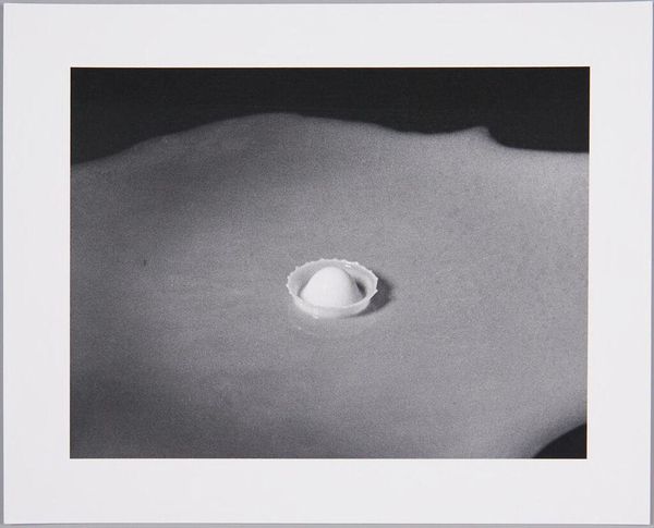 Curator: Harold Edgerton's "Milk Drop into Cup of Milk (4)" is a study in capturing the fleeting moment. It invites contemplation on the nature of time and visibility. Editor: It feels almost alien, doesn't it? Like some strange, icy planet forming in the void. Curator: Precisely. The stark contrast and the monochrome palette emphasize the drama of this ephemeral event. It freezes motion into something permanent. Milk as the very matrix of form. Editor: And it's so satisfying to finally see it with this level of detail. It reminds me how much incredible stuff happens all the time, unseen. Curator: Edgerton’s work underscores how technology allows us to explore the invisible realms, revealing the elegance of physics at play. Editor: After seeing this, I will approach my breakfast with a totally different mindset.