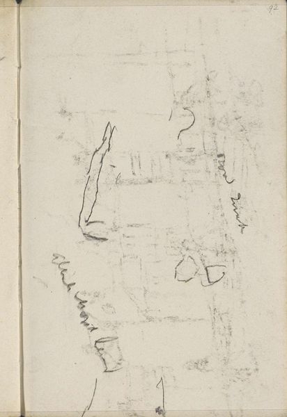 George Hendrik Breitner made this sketch of a cityscape, possibly Gorinchem, in the Netherlands, with pencil on paper. Breitner was a key figure in the Amsterdam Impressionism movement, which sought to represent everyday life and urban environments, but his position within the art world was complex. The sketch captures a fleeting moment, perhaps reflecting the changing social landscape of the Netherlands during the late 19th and early 20th centuries. It was a period of industrialization, urbanization, and shifting class structures. As such, Breitner’s focus on the everyday could have been seen as either a celebration or a critique of these changes, depending on the viewer's perspective. His work was often exhibited in established galleries and museums, granting him access to institutional power. Further archival research into Breitner's exhibition history, critical reception, and personal writings could reveal more about his intentions and the social context in which this sketch was made. Ultimately, the meaning of this artwork is contingent on its historical and institutional context, highlighting the crucial role of the art historian.