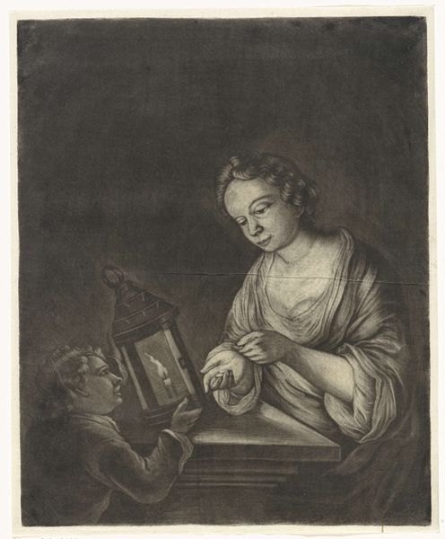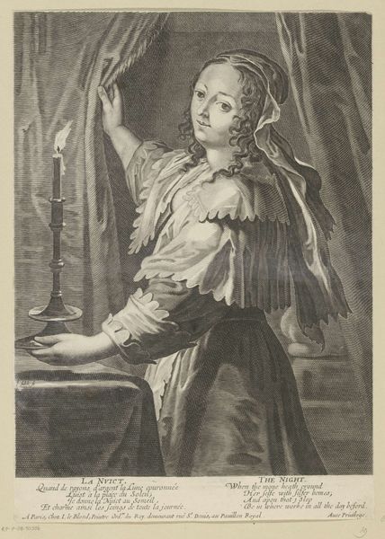 Willem Verschuring created this small etching, “Young Woman with a Candle,” around the turn of the 18th century. The composition employs a stark contrast between light and shadow. Notice how the flame illuminates the woman's face, drawing our eyes to her contemplative expression, while the rest of the scene fades into darkness. This strategic use of chiaroscuro is not merely decorative, it serves to highlight the woman as the focal point, framing her as an emblem of introspection. The single candle introduces the concept of temporality. The flame, a symbol of fleeting life and transient beauty, invites the viewer to contemplate themes of mortality and the ephemeral nature of existence. Consider also the semiotic weight of the candle. Historically, candles in art symbolized knowledge, hope, and the divine. But here, Verschuring appears to subvert these traditional associations, presenting a scenario where meaning is less fixed, allowing for ambiguity and personal interpretation. Ultimately, Verschuring’s work functions on multiple levels, inviting us to consider the complex interplay between form, symbolism, and subjective experience.