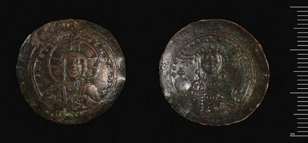 Editor: This is a coin from the Harvard Art Museums, featuring Michael VII. It’s small, golden, and depicts what looks like two figures. What do you see in this piece, considering its historical and material context? Curator: Well, considering its function as currency, we must ask: Who controlled its production? The labor and resources invested in this object—gold, skilled artisans—speak volumes about Byzantine economic power. How did its materiality reinforce social hierarchies? Editor: That’s a good point. I hadn't considered the labor behind something so small. It makes me think about value in a different way.