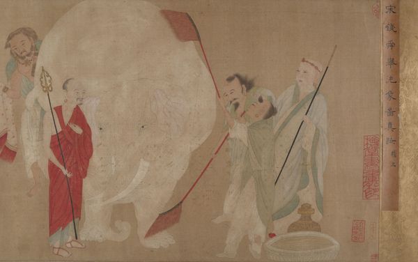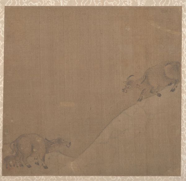Editor: This is “Washing Horses in a River,” believed to be from 1309 by an anonymous artist. It’s an ink painting and part of the Asian art collection at the Met. It has a rather dreamlike quality, almost like a memory. What first captures your attention in this piece? Curator: The way the horses are rendered really strikes me. Notice the cultural symbolism inherent in the horse: historically a signifier of wealth, power, and loyalty. The act of washing becomes less about hygiene, perhaps more a ritual of purification or even a symbolic baptism, washing away burdens. Do you sense any indication about what social class is represented in this landscape? Editor: That’s interesting; I hadn't considered the symbolism of the horses themselves. I just saw them as animals being cared for. Thinking about social class… the presence of the servants suggests a higher status, someone with means. Curator: Exactly. And beyond social stratification, consider the cultural memory at play here. Images of horses often recur in art history. What does the image of a man accompanied by horses, being cleansed, evoke for you in relation to traditional narratives of heroes, warriors, or emperors, who were closely related to these magnificent animals? Editor: I suppose I'm connecting it to images of emperors reviewing their troops or stories of great generals and their steeds. Curator: Precisely. The image participates in a lineage of powerful imagery, subtly reminding us of a heroic past, even in this seemingly simple, peaceful scene. It allows us to access historical memories. Editor: That’s amazing; seeing how it builds upon historical symbolism completely transforms my interpretation. Curator: And that's the magic of art; symbols evolving, accumulating layers of meaning over time. Editor: I will certainly look at paintings with more of a view towards the symbols they project from now on.