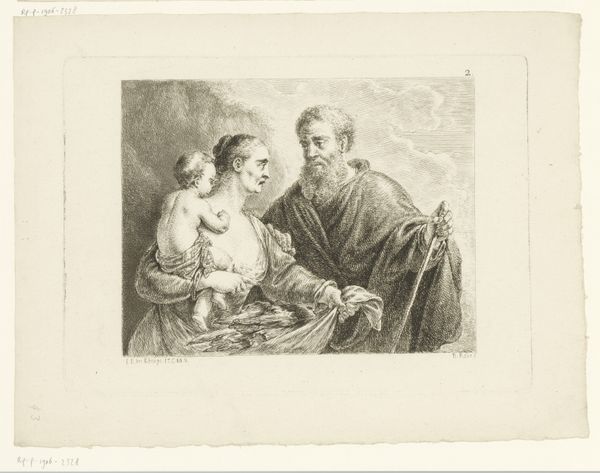 Editor: Here we have Gilles Rousselet’s engraving of "Matteüs de Evangelist," made around 1671-1672. There’s something incredibly peaceful about it, with the saint calmly writing accompanied by an angel. What symbols do you notice in this piece? Curator: Well, the angel itself is a powerful symbol. It's not just a decorative figure; it represents divine inspiration, a link between the saint and a higher power. The halo, of course, denotes sanctity, marking Matthew as chosen and blessed. Look closely – the light around the halo also implies intellectual enlightenment. It shows that through divine grace he gains ultimate understanding. Editor: I see what you mean! And the books? There are several in the image. Curator: Books represent knowledge and scripture, foundational to Matthew's role as an evangelist. Their sheer presence speaks to the weight of tradition and the power of the written word in shaping beliefs. Each element layers to reinforce a particular worldview. Do you find that the way light plays upon those objects, seems intentional? Editor: Yes, it almost spotlights their importance within the image! What strikes me is the contrast between Matthew's aged features and the angel's youthfulness; do you think this signifies a changing of guard or something similar? Curator: Potentially, it underscores the enduring nature of faith; each generation must carry that flame. Youth brings future continuity while wisdom brings experience, both required. This dialogue allows to carry forward their cultural weight through time. Editor: It's fascinating to see how much symbolism Rousselet layered into what I initially perceived as just a portrait! Thanks for unraveling these nuances for me. Curator: My pleasure! It shows us the enduring capacity for images to transmit beliefs and embody cultural memory across generations.