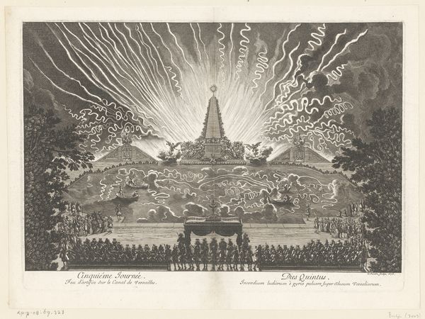 Emel'ian Alekseevič Fedoseev created this etching, entitled Vuurwerk in Moskou bij de viering van het einde van de Russisch-Turkse Oorlog, 1775 (Acte IV), in 1775. It depicts fireworks in Moscow celebrating the end of the Russo-Turkish War. This work is a window into the spectacle of 18th-century imperial power. Russia's victory over the Ottoman Empire was more than a military triumph; it was a statement of Russia’s expanding influence on the global stage. The elaborate fireworks display served to underscore Russia's achievements under Empress Catherine II. As we consider this image, we must also reflect on the complex power dynamics it represents. This display of might was achieved, in part, through the exploitation of serf labor and the suppression of dissent. It's a reminder that celebrations of national glory often mask social inequalities and human suffering. This print invites us to consider the cost of imperial ambition.