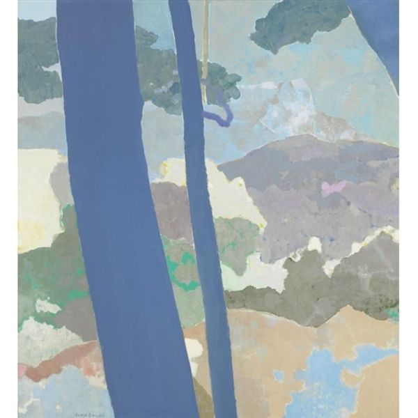 George Bunker made "Garden #2" in 1963, and it looks like a print, maybe a serigraph. The colors are so interesting, how he puts together this orange with the greens and reds - it's all about process. Looking at the surface, you can see how flat it is, no real depth, just layers of color bumping up against each other. There's this one particular green shape, kind of wedge-like, that really catches my eye. It's not exactly a leaf or anything specific, but it adds to the overall feeling of a garden, a place of growth and change. It reminds me a little of some of the early work by Alex Katz. Both artists share this interest in flattening forms and using color in unexpected ways. Ultimately, "Garden #2" is an invitation to see the world with fresh eyes, to appreciate the beauty of simple shapes and the magic of color.