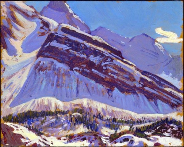 Terri Kelly Moyers created this landscape painting, Opabin Glory, sometime in the 20th century. Moyers situates us at the base of a grand vista. Our eyes are drawn to the mountains, piercing the sky above the rock-strewn foreground and line of trees. As a woman working in a traditionally male-dominated genre, Moyers brings a distinct sensibility to landscape painting. Her vantage point is low, almost as if we are lying on the ground, gazing up in awe. This positioning invites viewers to connect with the landscape on a visceral level. Moyers does not flatten this experience. Rather, the painting hints at the labor it takes to traverse such a space, with a foreground full of boulders. The bright yellow trees stand out, not only visually, but as an indication of the changing seasons. Moyers’ work, like that of many contemporary landscape painters, asks us to consider our place within the larger natural world. She evokes not only the glory, but the grit that comes with such beauty.
