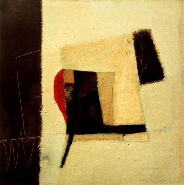 Editor: This is Mathias Goeritz’s “Untitled Collage.” I'm immediately struck by how the geometric shapes create a sense of organized chaos. There's a tension between the rigid forms and the slightly off-kilter arrangement. What kind of visual language do you see operating here? Curator: The arrangement certainly does project a visual tension. The colors are muted except for that brilliant orange, creating a disharmony that captivates. Look at how Goeritz deploys this disharmony; doesn't it echo early explorations of urban planning, like jarring architectural interventions designed to challenge societal norms? Editor: I see what you mean. The brown and the blue could represent something urban or architectural, the imposition of constructed forms. Curator: Exactly! And the contrast between these colors serves as symbolic friction. Consider too how Goeritz juxtaposes various textures within the collage medium itself. It's not merely about shapes, but how those shapes feel, adding layers to our understanding. Doesn't the lack of a clear focal point encourage a kind of restless wandering through the composition? Editor: It does. It feels almost incomplete or fragmented, prompting me to fill in the gaps mentally. The arrangement reminds me of city blocks. Curator: Perhaps Goeritz implies urban fragmentation to echo deeper existential fragmentation prevalent throughout the 20th century, not only of place, but even psychological disruptions. Editor: I hadn't considered that. The shapes, seemingly simple at first, now feel heavier with meaning, each one evoking broader themes. I am left wondering whether the collage represents tension and rupture. Curator: Yes, exactly, like the city that always was, is, and will be...under construction. The forms trigger different connotations for everyone, reflecting unique emotional, cultural and psychological imprints from each viewer’s individual landscape.