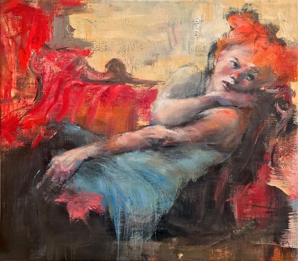 Editor: So, here we have Tania Rivilis' painting "Story; Enravishment," an oil-paint piece. The almost disorienting perspective and the use of light create an atmosphere that’s both intimate and vulnerable. What is your read on this piece? Curator: The unconventional point of view does invite a feeling of intimacy, but I think it’s more about how that intimacy is presented and framed. Figurative art, especially portraiture, always operates within certain social scripts, ways of seeing and being seen. The way Rivilis has cropped the subjects and distorted perspective subverts traditional expectations of the ideal image. Have you seen similar approaches elsewhere? Editor: Not immediately, but the unconventionality is part of its appeal. How does it challenge established conventions? Curator: Well, portraiture often serves as a form of social validation, especially historically, reinforcing societal norms. Rivilis' painting avoids this. The brushstrokes are visible; it doesn’t idealize, instead portraying the subjects in what could be seen as an unposed moment. Think about the institutional forces – galleries, collectors, public opinion – that often favor polished, idealized depictions. How does this piece defy that preference? Editor: It feels much more raw and honest because of that, focusing on the actual experience between people rather than portraying them to fit social expectations. Curator: Precisely! And the visible brushwork, the imperfections – they're a statement. A rejection of the demand for perfect imagery, which reflects back onto the real, complex nature of human connection. Considering the power structures embedded in how we portray each other, who do you think this artwork might be advocating *for*, by its challenging nature? Editor: Perhaps for a more empathetic and understanding representation of human experience, a rejection of overly constructed narratives. It shows vulnerability, and challenges what gets shown. Curator: Indeed! A subtle yet powerful statement against conformity, and a celebration of real relationships, questioning whose stories and images we prioritize within art and society. I find the experience truly moving, after diving into the painting a little deeper. Editor: I agree; thinking about the social implications of even intimate art like this has made me see so much more in this painting.