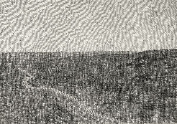 This illustration by Hryhorii Havrylenko for Yevhen Gutsal's "In the Stork Village" uses only black lines to create a landscape. It’s all about process here. It’s the kind of drawing where you can see the artist thinking, each mark deliberate, building up the image layer by layer. Look at how he creates depth. The foreground is dense, a thicket of crisscrossing lines that become the furrows in a field perhaps. Then, your eye travels upwards, where the lines become more open, suggesting a distant horizon, a lightness of being. It's like a visual hum, a low-frequency buzz that fills the whole image, making you feel like you're standing in that field, feeling the sun and wind. The simplicity is what makes it so powerful. It reminds me a little of Agnes Martin's grids, but with a folksy, illustrative twist. It's a good reminder that art isn't always about grand gestures, sometimes it’s about the quiet accumulation of small, thoughtful marks.