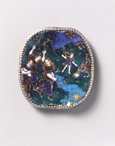 This watch was made by Suzanne de Court around the turn of the 17th century, and is fashioned from silver and enamel. This choice of material speaks to the luxury of the object, intended for the wealthy. Consider how the silversmith and enameler have collaborated to create this piece. The silver provides the structure, while the enamel brings color and imagery to life, with its textures and unique appearance. The watch’s case is decorated with mythological scenes, built up in layers with incredible detail. It is hard to imagine the intricacy of the brushstrokes required for this, all by hand. The production of such an object was a highly skilled endeavor, requiring years of training and expertise. The watch therefore reflects the artist's mastery, but also wider social issues of labor and value. It blurs the boundaries between art and craft, a testament to the skill and artistry that can be found in both realms.