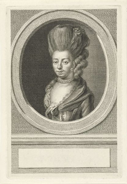 This is an engraving of Sophia Hedwig, Countess of Nassau-Dietz, rendered by an anonymous artist. The Countess is framed within an oval border, a structure which immediately organizes our perception of the subject. Note how the composition uses the oval form to contain and focus attention on the Countess’s face and upper body. The lines are finely etched, creating subtle gradations of light and shadow that model her features and the drapery of her gown. The texture created by these lines gives a tactile quality to the image. The inscription below acts as a plinth, adding another layer of structured framing. This combination of text and image reflects a semiotic system where visual and linguistic signs work together. The portrait, therefore, is not merely a representation, but also a carefully constructed signifier of status and identity, inviting continuous readings and interpretations.