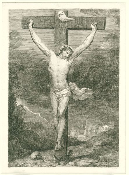 Pieter van Sompel created this engraving of the Crucifixion in the early 17th century, after a painting by Peter Paul Rubens. Depicting Christ on the cross, the image reflects both religious devotion and the complex political landscape of the time. Engravings like this one played a crucial role in disseminating artistic ideas across Europe. Printed in the Netherlands, this work shows the influence of the Catholic Reformation and the ways in which artists and institutions helped to promote certain religious and political views. The detailed rendering of Christ's suffering, combined with the classical composition, demonstrates how artists sought to engage viewers emotionally and intellectually. This was a time of religious conflict and rapidly solidifying national identities. The image's blend of religious fervor and classical style speaks to the cultural tensions of the era. To fully appreciate this work, we can consult historical archives, religious texts, and studies of print culture. These resources shed light on the artist’s intentions and the social context in which the image was produced and consumed. The meaning of art always depends on its historical and institutional circumstances.