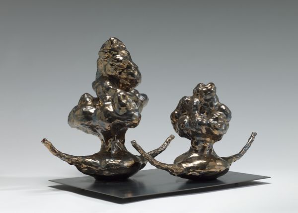 Editor: This is Reuben Nakian’s bronze sculpture, *Leda and the Swan*, created in 1978. It strikes me as incredibly raw and visceral; not at all idealized. How do you interpret this work? Curator: This piece throws a punch. It pulls the ancient myth into a discomforting conversation about power and violation, doesn’t it? Nakian rejects the typical romanticization, and that aesthetic decision screams of a deliberate engagement with the darker undercurrents of these classical stories. Do you see the agency that Nakian gives the swan? Editor: Yes, the swan definitely dominates the scene; Leda is almost subsumed. The rough, almost violent, texture of the bronze adds to that feeling of tension and unease. It’s certainly not the Leda of Renaissance paintings! Curator: Exactly. We are challenged to examine the uncomfortable relationship between beauty, violence, and mythology, aren’t we? How does this departure from idealized forms contribute to the narrative, do you think? Does it invite us to question our own roles as viewers? Editor: That’s fascinating. The piece makes the viewer consider the ethics of witnessing a non-consensual act, both within the myth and now, centuries later, memorialized in art. Curator: Nakian’s piece reframes the whole Leda and the Swan narrative. By stripping away the seductive aesthetic, he forces a reckoning with the power dynamics inherent within the myth. This becomes a poignant critique of artistic traditions that often excuse or overlook acts of violence. It speaks to a broader feminist reading of historical narratives, right? Editor: I never considered how the medium and style could be just as critical as the subject matter. Thanks to Nakian’s choice, it’s an examination of how myth can either reinforce or subvert societal power structures. Curator: Absolutely, and I believe that's the piece's enduring relevance; its persistent urging to deconstruct historical and aesthetic conventions to unveil the inherent complexities of gender, power, and representation.