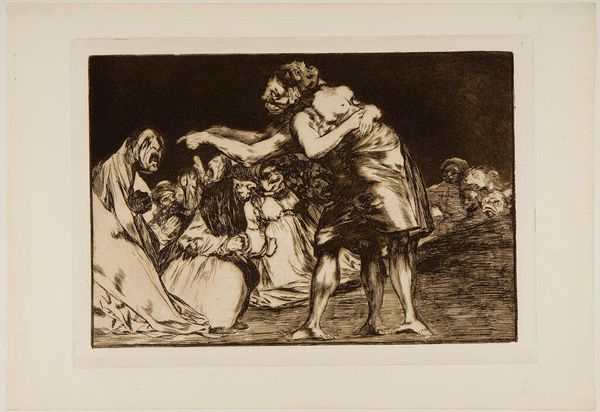 Editor: Francesco Bartolozzi's "Quarrel of Four Men" feels like a scene plucked from a fever dream. The figures are so dynamic, but the scene is also quite disturbing. What story do you think Bartolozzi is trying to tell? Curator: Ah, yes, a dance of fury frozen in time! Look at how Bartolozzi uses line; it's almost theatrical, wouldn't you say? It feels like he's capturing a fleeting moment of passion, perhaps a clash of egos. What does it evoke in you, looking at it? Editor: It makes me think about power, and how quickly things can escalate. I hadn't noticed the lines as theatrical, but I see that now. Curator: Exactly! And think about the time period. What did it mean to stage such a scene of masculine confrontation? Perhaps he's inviting us to consider the very nature of conflict itself. Always timely, isn't it? Editor: It is. I'll definitely be thinking about that. Thanks for opening my eyes to the performance aspect. Curator: My pleasure. Art’s like a mirror, isn’t it? Reflecting back our own messy humanity.