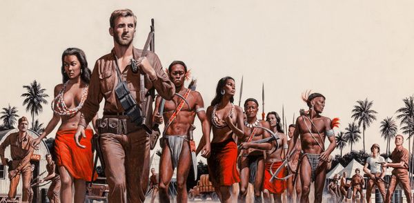Mort Künstler painted “Yield to the Amazon Women” with oils, I’m guessing sometime in the mid-20th century. Look at how the paint is so smoothly applied; you can hardly see the brushstrokes. It's like he's trying to disappear, as if the image just materialized. There's something about the way he renders flesh, all those warm, brown, red tones. Künstler’s women are idealized. They don’t look like they are made of paint at all. He has clearly spent a lot of time on the male figure, but the women are the focus, and I wonder why. Take for instance the figure at the front, she has a determined, forward gaze. The artist seems to have spent more time rendering this figure than any other in the piece. This reminds me a little of N.C. Wyeth, with his dramatic flair and focus on storytelling. But Künstler is doing something different, the image embraces ambiguity, leaving us to fill in the gaps.