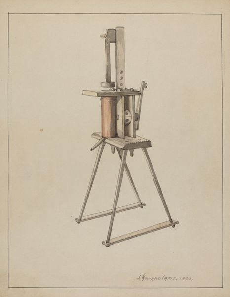 Clyde L. Cheney, who lived from 1855 to 1995, created this rendering of a spinning wheel with pencil and watercolor on paper. Although the image shows a domestic tool rather than an artwork, it offers a window into the intersection of craft, technology, and gendered labor. Spinning wheels like this one were once commonplace in households, enabling the transformation of raw fibers into yarn for weaving and sewing. The artist meticulously captures the wheel's intricate details, from the large drive wheel to the flyer and spindle, showcasing the mechanics of textile production. Before industrialization, spinning was a time-consuming, skilled task, predominantly performed by women. This image reminds us that craft activities were integral to domestic economies. By focusing our attention on the artistry of the spinning wheel, Cheney blurs the line between fine art and functional object, asking us to consider the labor and skill involved in textile production.