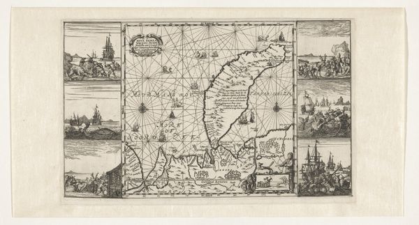 Curator: Pieter Mortier’s "Kaart van de Republiek der Zeven Verenigde Nederlanden en omliggende gebieden" from 1707. It's an engraving, offering a detailed view of the Dutch Republic. What's your immediate impression? Editor: Stark. The lines are so clean and deliberate, aren't they? You immediately get the sense of political borders, of a controlled and defined space, and all its socio-economic structures as a consequence. Curator: Absolutely. Considering Mortier was a prominent cartographer and printmaker, the means of production here are vital. This map wasn't just about geographical accuracy; it was about reinforcing Dutch identity and projecting power. The act of engraving itself allowed for mass production and distribution, embedding this image into the collective consciousness. Editor: Right. Look at the ornamental details – the coats of arms, the allegorical figures. These are deliberately placed markers, not just decorative but serving to legitimize authority and national identity. This isn't merely about topography; it’s a statement of self-affirmation at a key period in early modern European history. And think about who this map was intended *for*. "Ad usum Serenissimi Burgundie Ducis"—for the use of the Most Serene Duke of Burgundy. Curator: Good point. And the details, crafted through laborious engraving techniques, showcase the commercial sophistication of Dutch printmaking at the time. The materiality is also very important because of what a mass-produced print entails for public knowledge, for national and international economic growth in printmaking workshops and cartographic projects that become increasingly globalized through trade circuits, impacting the way this knowledge could reach other populations around the world. Editor: That's interesting! It reveals the map was in circulation across Europe’s political structures, perhaps, as evidence, not just for navigation or geographical knowledge. The very act of its creation and ownership serves political strategies and social negotiation. Curator: Precisely. These weren't merely tools for travelers but objects deeply embedded within the fabric of political and economic life. By looking at the processes involved, and at the same time considering it in the cultural milieu, we get closer to this historical meaning-making. Editor: Seeing this map, for me, creates the bridge between aesthetics and practical function. Now I also see how it intersects with political power, national identity, and also serves propaganda! Curator: Precisely, seeing its materiality and method of construction really does allow the understanding of its wide reach, while, yes, still reflecting the biases that surround it.