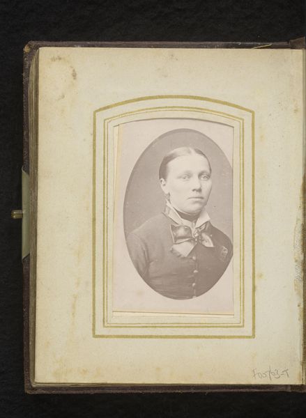 Curator: This albumen print, likely a photographic reproduction of a print, captures Prince Alexander I, son of Willem II, sometime between 1863 and 1869. It’s an interesting piece reflecting royal portraiture of the time. Editor: My first impression is how incredibly staged and stiff it feels. It's technically proficient, but lacks any sense of personality. He looks imprisoned in formality. Curator: Right. Let’s think about the process. This is photography in its relative infancy. Albumen prints required coating paper with egg whites before developing, a labor-intensive process influencing the aesthetics. This print reproduces another, probably a painting or engraving. What’s the purpose of further reproduction? Editor: It raises fascinating questions about accessibility and dissemination of power, doesn't it? A photographic reproduction makes the image of royalty more readily available. Consider the power dynamics implicit in its creation. He isn’t being presented as approachable, but as aloof, in order to signal superior rank. The albumen’s materiality is key; consider the availability and cost of materials and time. Curator: Precisely! The uniform, the awards—they’re deliberately presented. But beyond its overt symbolism, this photoprint functioned in 19th century print and portrait markets, circulated via publications and portrait studios. The consumer becomes a part of the process. How is such a market sustained? Editor: Exactly. Think about the market sustained and whose power is being further legitimized by consumption of art objects like these images. Consider those outside that power, unable to access representation in the same manner. It highlights social stratification in the 19th Century but extends still further; it challenges what we find meaningful about this type of artwork. Curator: An important connection! By exploring materiality and mass-reproducibility, it's clear that seemingly traditional portraiture provides significant insight into broader systems. Editor: Yes, understanding this context expands our perspective of this photograph from mere historical document to a cultural artifact.