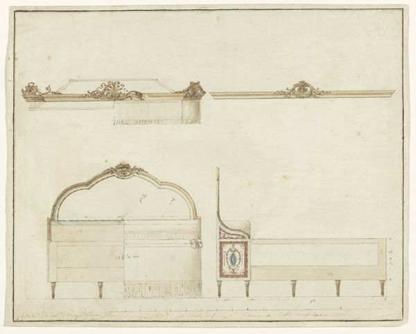 Editor: We're looking at "Drawing of the double dry dock in Hellevoetsluis," made around 1802 by Jan Blanken Jansz. It’s currently at the Rijksmuseum. The architectural detail, captured in such delicate watercolor, feels both precise and slightly dreamlike, don't you think? What do you see in this piece? Curator: Well, it feels to me like a portal, almost. The perspective pulls you in, doesn't it? Like a stage set, carefully arranged. This wasn’t just a technical drawing, I think, it was also an assertion of Dutch ingenuity and power. Blanken was ahead of his time – a civil engineer, and he understood how to harness the forces of nature and visualise them. The precision balances beautifully with the handmade paper. You can almost feel the grit of the 18th century on it, a time when nation-states were dreaming themselves into being. Does the subdued color palette inform the mood for you? Editor: It definitely lends a historical gravitas, especially against that creamy, aged paper. It's functional yet oddly beautiful. I wonder what Blanken felt about these projects – just another job, or something more? Curator: I imagine he felt both, simultaneously! The thrill of problem-solving, combined with the pressure of delivering a massive, essential piece of infrastructure for the burgeoning Dutch navy. It makes you consider the mindset required, the sheer confidence in one's ability to bend the world to one’s will, right? I see a kind of controlled optimism in this image, what about you? Editor: Absolutely. And, it is so fragile, this document... surviving all this time to tell the story of something so robust. Food for thought. Curator: Indeed! I have newfound respect for the draughtsman here; he reminds us that even technical prowess has its poetic dimensions.