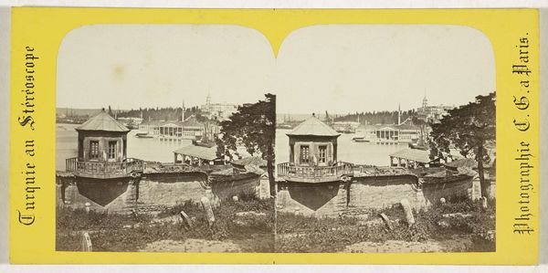 Curator: This stereo card depicts the Eyüp Cemetery in Istanbul, a captivating image captured by Charles Gaudin between 1861 and 1870. The use of photography lends a tangible quality to this serene yet powerful Islamic landscape. Editor: What strikes me is the subdued palette; the greys and browns evoke a sense of melancholy that permeates the entire composition, offset by the geometrical repetitions of the standing gravestones. Curator: The symmetry indeed lends a contemplative quality, doesn’t it? In Islamic tradition, cemeteries are often peaceful, even beautiful, places meant for remembrance. Note the presence of what seem to be Ottoman-era gravestones; each stone acting as a symbolic pillar representing a life. Their height might correlate to the departed's social standing, I imagine? Editor: A possibility indeed, although the composition feels weighted towards horizontality, an intentional strategy or simple accident? Curator: I see the image as intentionally representing time and spiritual continuity, both fundamental in understanding any funerary context. Gaudin offers a perspective not simply about death but about collective memory, even hope within a visual rendering of Ottoman Istanbul. Editor: I am particularly drawn to the textural play in this work—the rough stones of the low wall against the worn and carefully crafted headstones and even the clothing on the figure near the work’s lower quadrant. Curator: I can see that. Every component echoes and amplifies the theme. Gaudin appears to invite us to witness, in photographic stillness, a conversation with time. We glean this by his capturing enduring symbols within a temporal medium. Editor: Yes, the composition, with the receding cemetery and distant buildings, invites visual movement despite the monochrome palette; its careful rendering offers a timeless dimension within an otherwise austere photographic presentation. This contrast yields surprising aesthetic energy! Curator: Exactly. It showcases the power of symbolism in photography. Editor: Absolutely. Its architectural planes are equally striking.
