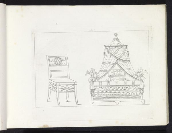 This print by Pietro Ruga shows two ornamental borders and a table with vases and urns. Though the date is unknown, its neoclassical style suggests it was made in the late 18th or early 19th century. The print is characterized by fine lines and careful shading, created through a process of etching or engraving. It demands skill and precision, demonstrating the artist's mastery over the tools of printmaking. The work appears to be a design study for potential architectural details, showcasing recurring floral motifs and symmetrical arrangements. These patterns could be translated into various materials, such as plasterwork, stone carving, or even textiles. The print acts as a template, a guide for skilled artisans to follow. Ultimately, this understated print illuminates the crucial link between design, production, and labor. It encapsulates the social and cultural context in which the craft of ornament played a significant role in shaping the built environment and everyday objects.