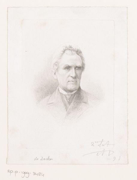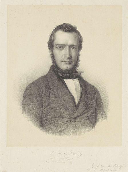 Editor: Here we have Antoon Van IJsendijck’s "Zelfportret," dating sometime between 1811 and 1875. It's a pencil drawing, quite delicate in its execution. I’m struck by the direct gaze of the subject; there's an intensity that comes across even in the subtle shading. What strikes you about this work? Curator: I notice immediately the societal conventions being upheld. This self-portrait, like many of its time, performs a specific role. Van IJsendijck is presenting himself as a respectable member of society through careful detail of his clothing and a controlled demeanor. How do you see this conforming to, or perhaps subverting, the typical expectations for portraiture in this period? Editor: That’s a great point. I hadn't thought about how carefully constructed that image is. He’s not revealing anything too vulnerable, is he? It’s more about projecting a certain status. Curator: Precisely! The “romanticism” label can be misleading. While there may be romantic flourishes in the hairstyle, this work is more firmly rooted in presenting a public persona, shaped by the institutional and social forces dictating how artists presented themselves. Consider who his audience was likely to be. How would that influence his self-representation? Editor: Presumably, potential patrons, fellow artists, or maybe even a future audience that could appreciate his work and understand his importance? So this is not simply self-expression but a strategic social act? Curator: Exactly! He’s constructing an image aligned with the expectations and power structures of his time. Think of it as an early form of self-promotion deeply entwined with the art market of the 19th century. Editor: That gives me a whole new way to see it. I was initially focused on the individual, but understanding the context really changes things. Curator: Indeed, looking at the politics of imagery reveals far more than just artistic skill. It unveils the silent dialogues between the artist, their society, and us, the contemporary viewers.