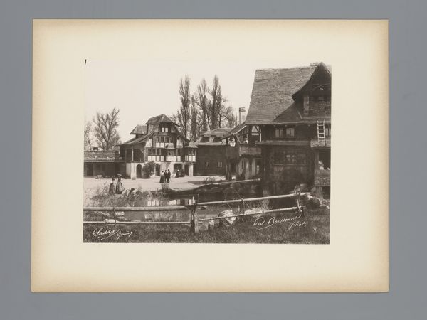Frédéric Boissonnas created this photograph, "Straatgezicht in een Zwitsers dorp," capturing a Swiss village street. Boissonnas was part of a cultural moment that romanticized rural life, and he positioned himself within a tradition of landscape photography that saw the natural world as both beautiful and as a source of national identity. In this quiet image, class distinctions are subtly present. The architecture suggests a modest prosperity, while the figures in the photograph, though not explicitly posed, seem aware of the camera's gaze, hinting at a self-consciousness influenced by social standing. The photograph offers a glimpse into the daily lives of people in a specific time and place. It invites us to consider how identity is shaped by environment and social context. Boissonnas’s photograph is not just a depiction of a place; it's a reflection on the relationship between people and their surroundings, imbued with the quiet complexities of everyday life.