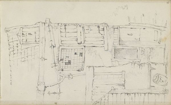 Maria Vos made this floor plan for Villa Grada as a preliminary sketch using graphite pencil on paper. These are traditional drawing materials, but even in a quick sketch like this, the physical properties of the graphite and paper inform the image. You can see how Vos used the side of the pencil to shade broad areas, establishing the form of rooms. The grain of the paper gives the drawing a textured feel, even though the lines themselves are precise. Consider how the inherent qualities of the materials influence the way we perceive space and structure. Although the labor involved might appear minimal, such sketches involved considerable skilled draughtsmanship and architectural understanding. It is a reminder that even the most seemingly simple drawing involves a complex interplay of material and making. These plans were ultimately part of a bigger system of property and consumption, as the Villa would become a place of residence. Ultimately, this sketch serves as a reminder that architecture relies on craft skills and the careful consideration of materials.