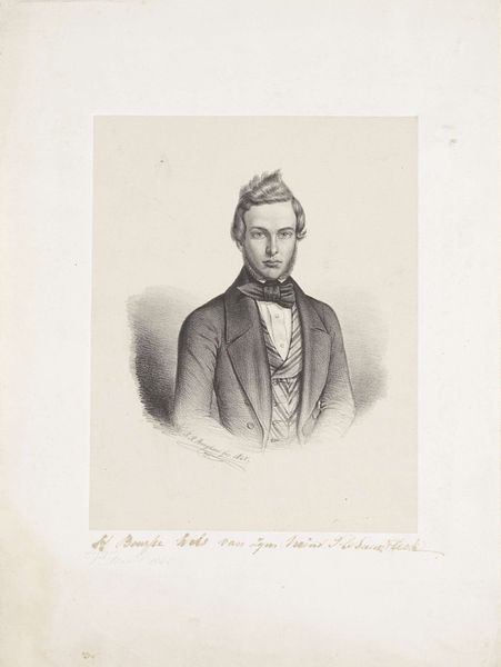 Editor: This is a pencil drawing, "Portret van J.J. van Oosterzee," dating from 1818 to 1871, attributed to Isaac Cornelis Elink Sterk and housed at the Rijksmuseum. It's a very formal portrait. The detail in the rendering of the face is remarkable, juxtaposed against a more broadly rendered body. What do you see in this piece, looking at it through a formal lens? Curator: Indeed. Note how the artist uses subtle tonal gradations, building volume and texture primarily through the density and directionality of the pencil strokes themselves. Consider the contrast between the crisp, linear precision defining the subject's features, and the looser, more suggestive handling of light and shadow in the background and lower body. The artist masterfully employs line and value to achieve both a realistic likeness and a sense of depth. What does that suggest to you? Editor: It suggests a focus on the inherent qualities of line and shading in drawing. How the sharp details around the face bring it forward and give it the emphasis, even as the composition follows academic portrait conventions. Do you see that balance in academic art often? Curator: It is not always handled so elegantly. Often, in the service of capturing an individual's likeness in precise detail, we see portraiture become overly literal, losing a sense of vitality. Here, the contrast in styles enhances the illusion, activating the surface with two distinct kinds of marks. This lends the drawing a palpable sense of visual energy. Editor: So it's the push and pull of the drawing techniques themselves that make it particularly compelling? It is an intriguing emphasis. Curator: Precisely. Through rigorous formal analysis, we can uncover unexpected dynamics that elevate even seemingly conventional works. This approach allows us to discover not merely what a piece represents, but how it speaks to us, as a self-contained artistic gesture. Editor: It has given me a great amount to contemplate! Thank you.