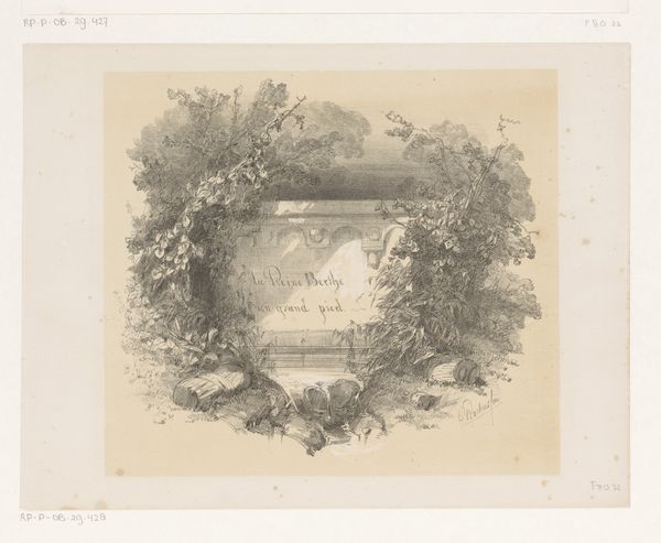 Curator: This is a page from "The Madame B Album," dating back to the 1870s. The album, held here at The Art Institute of Chicago, features photographs and prints interwoven with watercolor and coloured pencil drawings by Marie-Blanche Hennelle Fournier. Editor: My first thought is, it's delightfully bizarre! The contrast between the rigidly geometrical cityscapes and the free-flowing organic vines is incredibly striking. Curator: Hennelle Fournier used a diverse range of readily available materials and combined media in interesting ways to create the album. This wasn't fine art intended for a gallery. It’s an example of the artistic activity of a bourgeois woman filling her time and producing an object for personal consumption. The artistic choices show her understanding of color theory and how everyday material could have elevated effects. Editor: Absolutely. Let’s focus on the composition a bit. Notice how the photograph in the center—that vertiginous, almost upside-down view—is framed by a watercolor trellis teeming with grape vines and other foliage. It’s a very clever structural device that highlights both geometric forms and biomorphic shapes to contrast order against disorder in an intriguing, pleasing arrangement of positive and negative space. Curator: Exactly! She is juxtaposing the "modern" world, represented by photographs and the built urban environment, with nature. The labor of producing wine, indicated by the grapes, transforms both the photograph and the social rituals around artmaking. Editor: The palette is also very engaging. The muted tones of the sepia-toned photographs complement the more vibrant watercolor greens and purples. Note the detail of the grape leaves and clusters. This juxtaposition offers viewers a chance to visually interpret modernity. Curator: And importantly, this was an album for personal consumption, reflecting the tastes and social world of its maker. It points to the domestic role of women and the creative outlets that women would often pursue with little recognition. Editor: Considering the choices behind the color, pattern, and that surprising compositional structure gives the entire piece a feeling of sophistication. Thank you. It feels so interesting to know these details, especially about materials! Curator: A new perspective for seeing the album with greater knowledge of her context and choices can add so much!