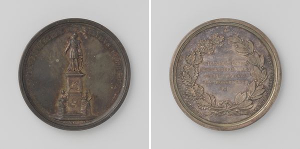 This silver medal was designed to commemorate the 25th wedding anniversary of Joan Osy, Lord of Palesteyn en Zegwaard, and Petronella van Wevelinchoven. Theodorus Victor van Berckel produced it sometime between 1764 and 1808 in the Netherlands. These types of commemorative medals were quite popular among the Dutch elite during the 18th century as symbols of personal status and familial pride. The detailed coat of arms and inscription on the medal are visual declarations of the couple's lineage, social standing, and the significance of their union within their community. The landscape on the medal is likely a reference to the couple's estate. Understanding this artwork requires knowledge of Dutch social history, the conventions of heraldry, and the economic structures that supported elite patronage. By exploring archival records, genealogical databases, and period literature, we can recover the medal's value as a cultural artifact that speaks volumes about power, family, and memory in the 18th-century Dutch Republic.